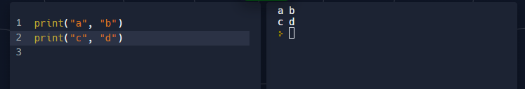 a b와 c d 사이 개행이 자동으로 적용된 것을 볼 수 있다.