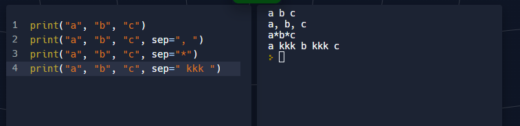 sep : 출력할 때 출력한 값들 사이사이에 넣어줄 문자.