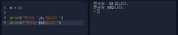 4. print(f"{n}")